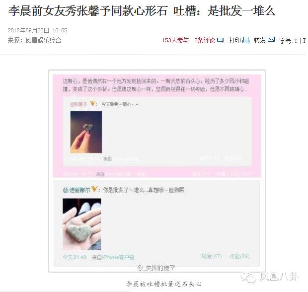 先来说说“石头门”,先是张馨予恋爱期间高调晒出李晨送给她的石头心,没想到前女友们也相继晒出同款