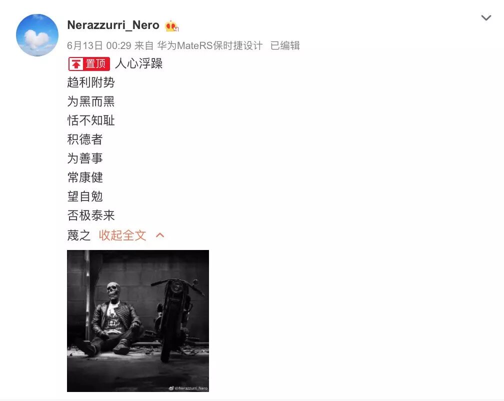 小妹还记得,面对这么多的网友爆料,何捷就开始清空微博了,开通了6年的微博只剩下3条内容,而现在更是只留下了一条置顶微博。