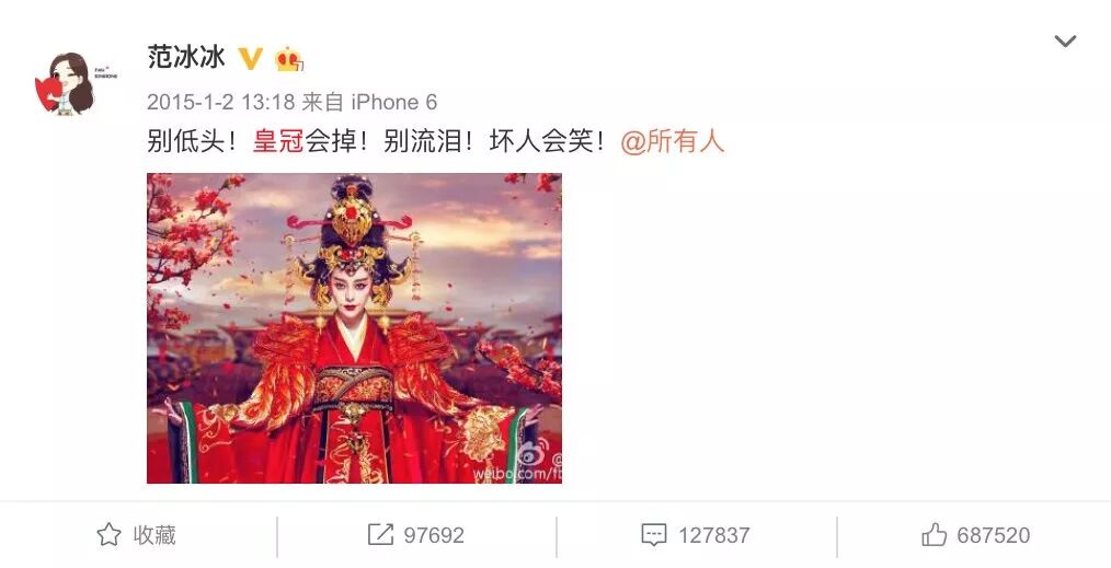 比如说同款微博,一个皇冠会掉,一个双下巴会掉。