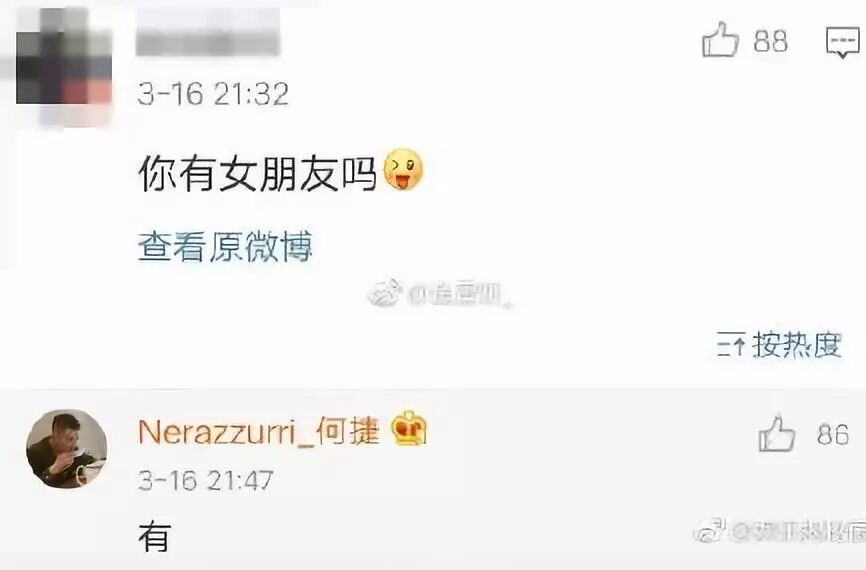 同月,网友曾问何捷是否有女朋友,他的回答是——“有”。