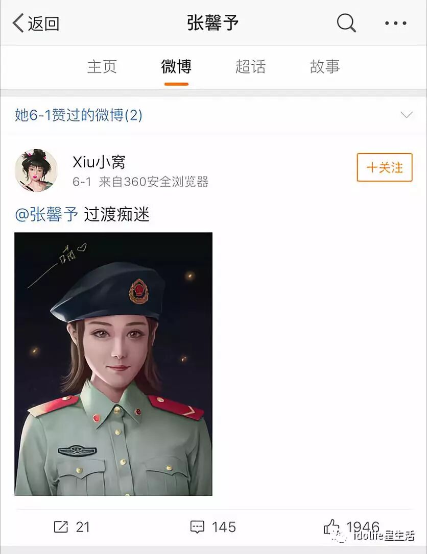而两人平时也会隔空暗戳戳地互动,6月1日张馨予突然点赞了一条她在《奇兵神犬》中的造型手绘图,要知道这个节目是去年11月录制的!