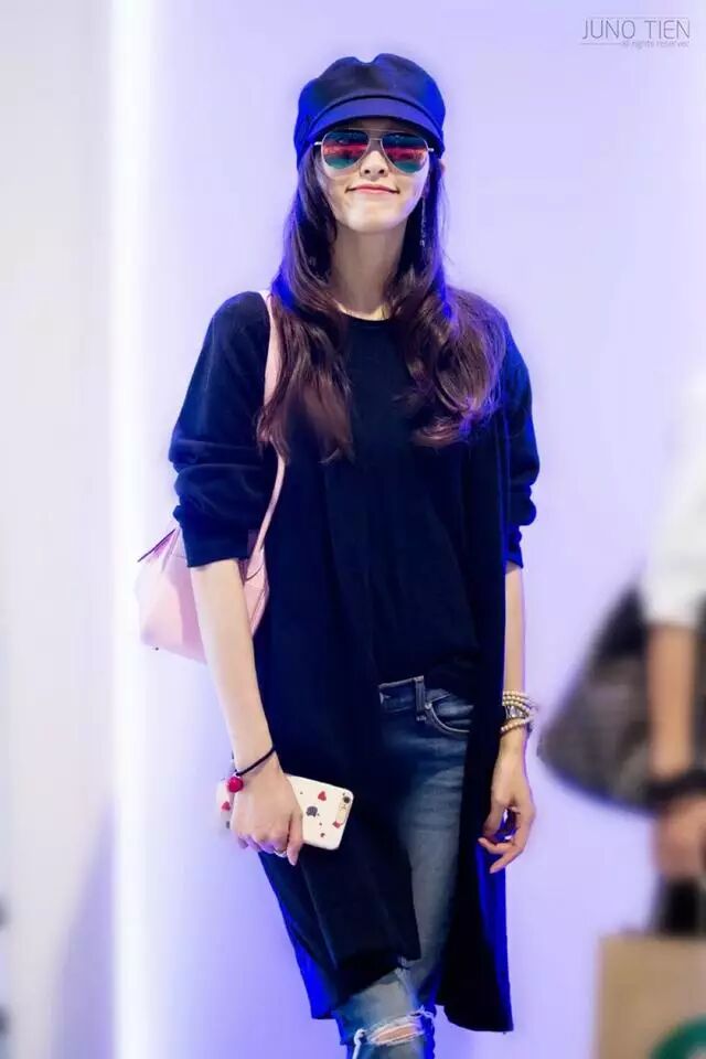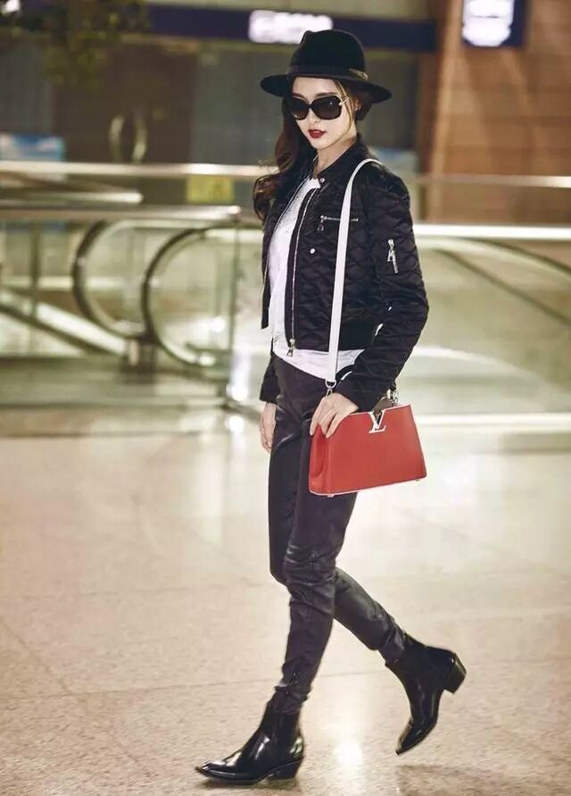 今年短款很流行,可以完美的拉长腿部线条,唐嫣就穿这样一件黑色短款外套,内搭白色T恤,下搭黑色皮裤和黑色短靴,完美的凸显了腰线,穿皮裤更显腿部纤细修长。