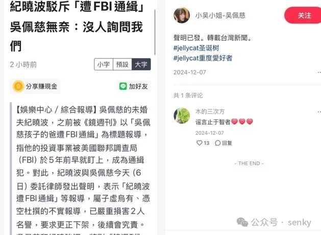 更让人困惑的是,尽管吴佩慈如此高调地为纪晓波辩护,但网络舆论却并未给予她太多支持。甚至有网友戏言:“如果纪晓波真的在逃,难道他还敢公开发律师函?这未免也太戏剧性了吧?”更有网友表示:“如果纪晓波真是无辜,那么吴佩慈为什么不让他回香港,或者回内地接受调查呢?难道他的‘无辜’只存在于吴佩慈的想象中?”