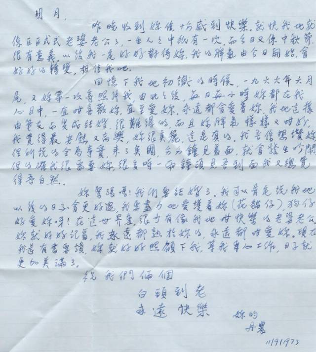 秘密结婚当天老伍的回信:“我们相识是在1966年6月底,从此,你每天每小时都在我信中,我一直都很喜欢你,然后爱上你,我永远都会爱着你。”