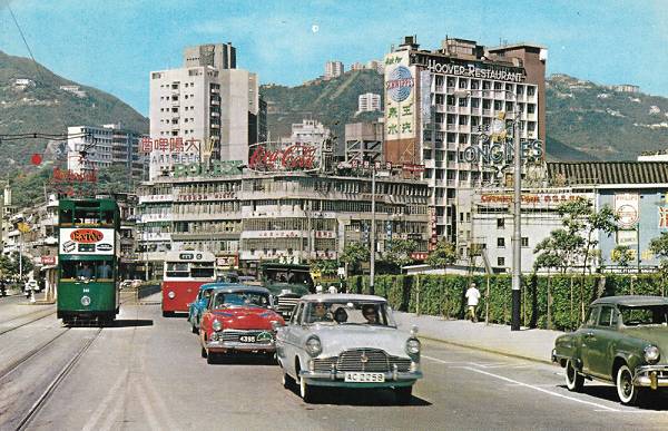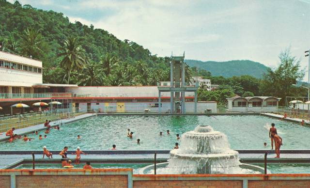 老伍和明月通信初期交换的明信片,左图是槟城1966年新建的中华游泳池,右图是香港铜锣湾,右边是维多利亚公园。