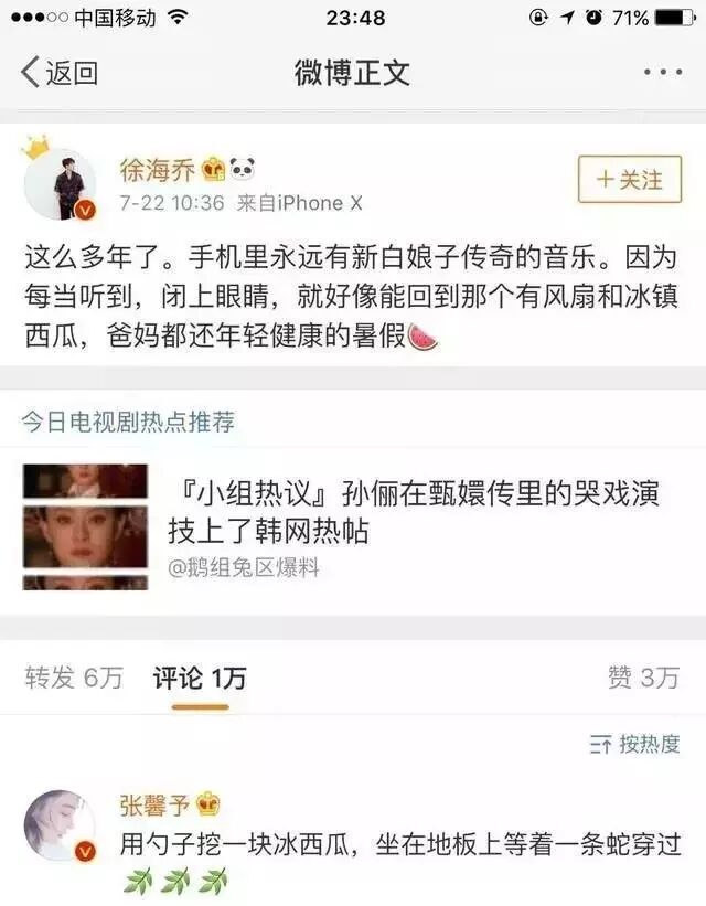 据徐妈妈说,有一名女星和徐海乔因戏结缘,她爆红后又沉寂了一段时间,但徐妈妈也留下了巨大悬念,没有告诉我们是谁!于是便让广大网友纷纷化身侦探....