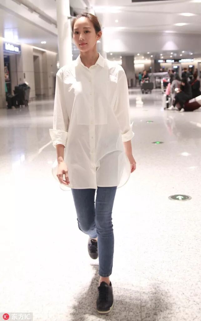 衬衫在职场上是必不可少的利器之一,张钧甯在平时也挺爱穿,毕竟是百搭的嘛,搭配一条牛仔裤,轻松出街。