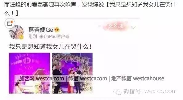 每次章子怡与汪峰晒完恩爱之后,都会在微博泼冷水的葛荟婕次此次也不例外,她在凌晨时段发微博:「我只是想知道我女儿在哭什么。」