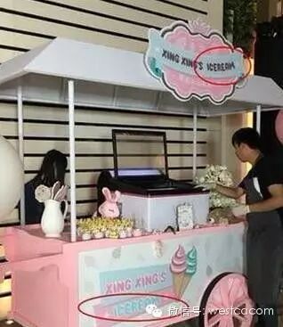不过有网友忍不住吐槽,花重金举办的宴会却连英文字都拼错了,原来是会场的冰淇淋车外观上的冰淇淋英文拼错了,正好被眼尖的网友找到机会点出来酸了一顿。