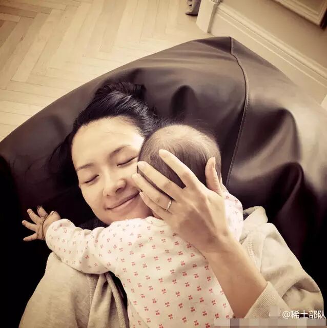 章子怡此前晒出的怀抱女儿的照片。 (来自:腾讯娱乐)
