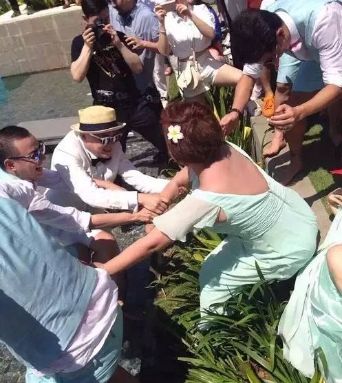 其实,从柳岩在婚礼前发布的一条有关自己“第一次当伴娘”的微博中,不难看出,她是对这次经历充满期待,也是用心打扮过的……一旦被扔进水里,先别说精心设计的造型会乱,这身薄纱的伴娘裙,也肯定会全部走光。