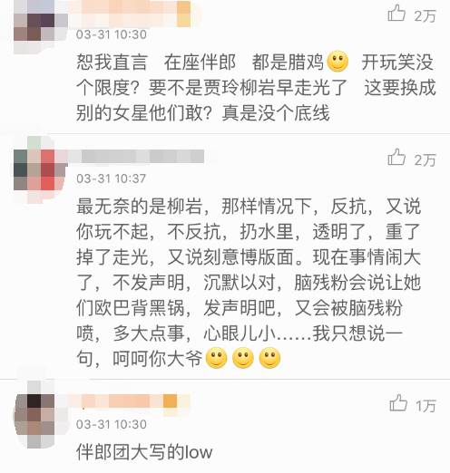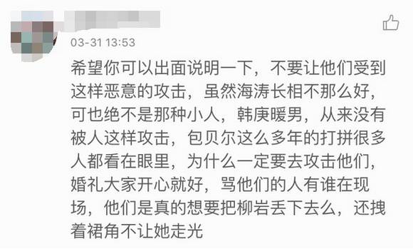 甚至在柳岩那条做伴娘的微博下面,还有希望柳岩出面澄清:“穿成这样是我故意的,伴郎团都是高富帅大暖男,绝对不是猥亵妇女……”的评论。