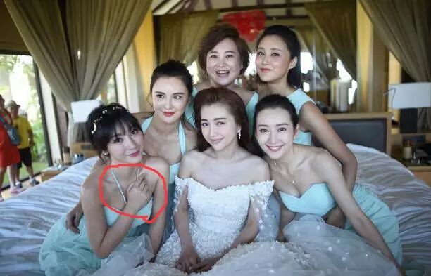 就算在婚礼前的合照中,柳岩已经极力挡住自己的上围,仅仅是为了不抢新娘的风头……