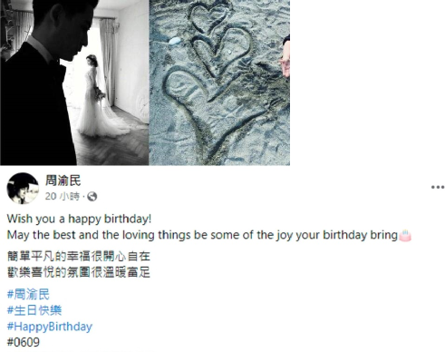 他们从不公开秀恩爱撒狗粮,除开生日庆生,夫妻俩互动祝福。