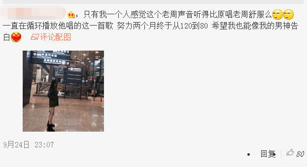 有网友评论道:“只有我一个人感觉这个老周声音听得比原唱老周舒服么”;“讲真,这个老周(周传雄)和原唱老周唱得很缠绵,原唱老周有青涩的感觉,都棒棒的。”