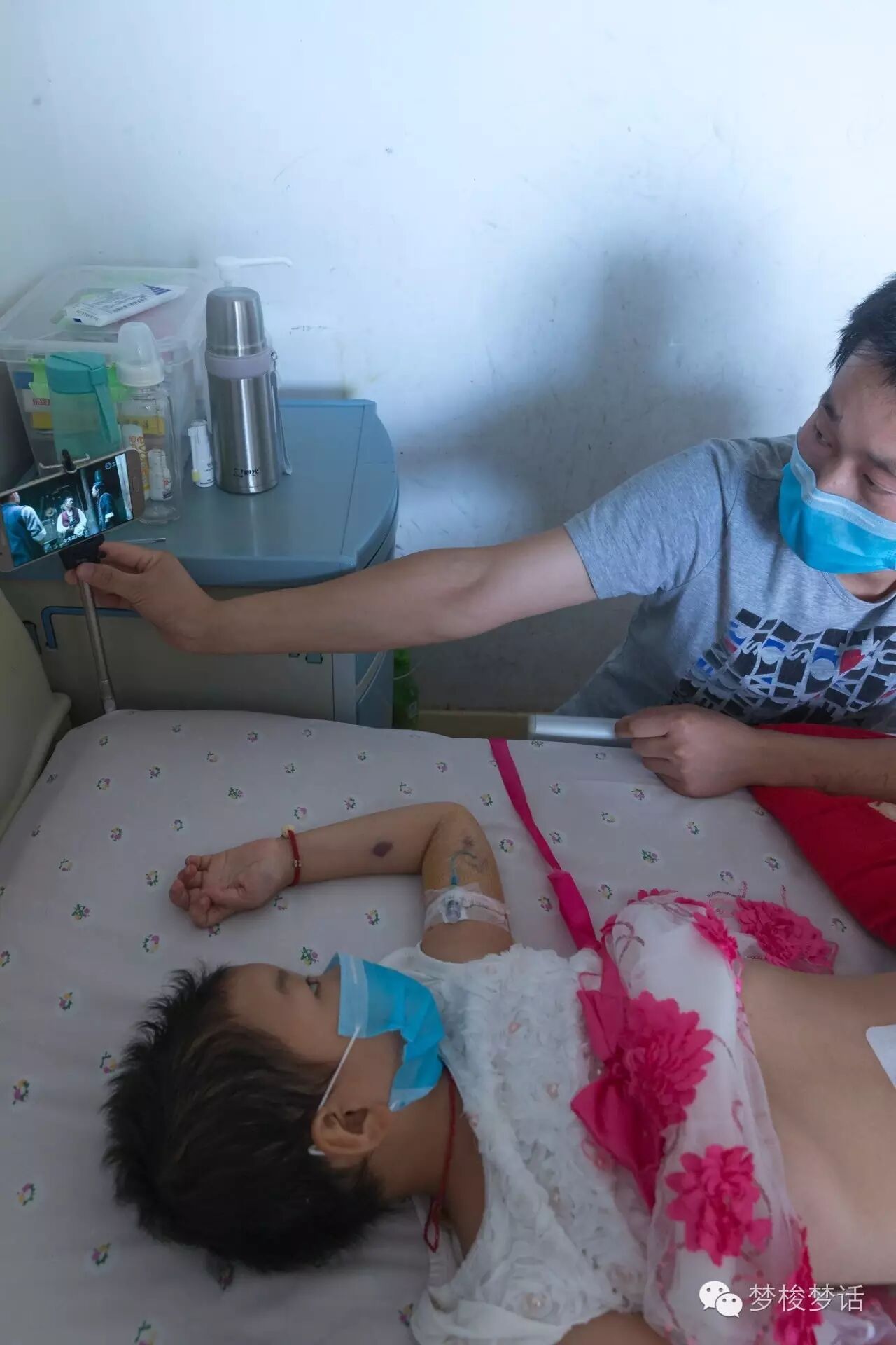 2年多的白血病治疗,宗淼依然没有适应,看到针头就会痛哭,在一旁的爸爸苗可乐只能用手挡孩子的眼睛。