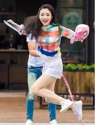 红色格仔衬衫搭配白色短裤,随意舒适的打扮,非常适合90后,让27岁的张含韵看起来就像18岁一样。