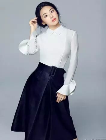 张含韵已经27岁了,身穿白衬衫和黑色长裙,黑白经典搭配,知性优雅,增加女性特有的成熟魅力。