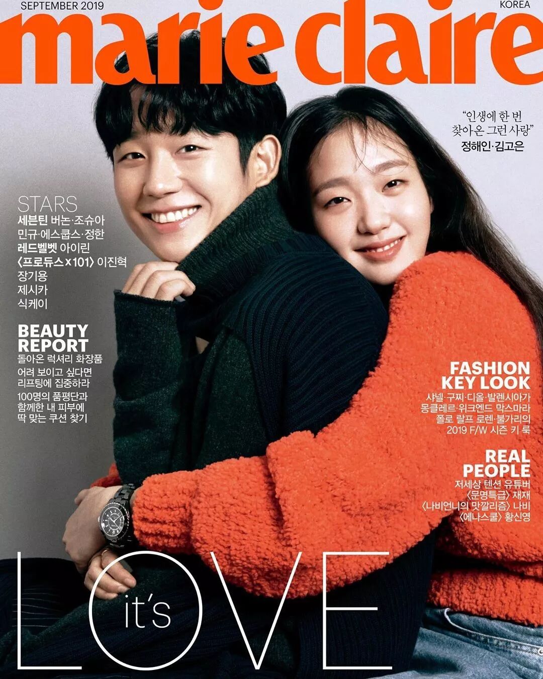 合体拍摄《Marie Claire》韩国版九月刊,温暖的毛衣造型,温暖又浪漫,特别有秋日气息。