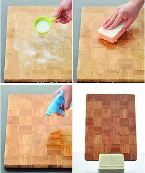 先用洗洁精将砧板清洗一遍;在砧板上倒一层盐,用湿抹布反复擦洗砧板表面,再用冷水冲洗干净;等到1分钟;将白醋和水按1:2的比例配好,均匀喷洒在砧板表面,直接挂起晾干。