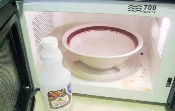 将白醋倒进碗里,再将碗放进微波炉中,加热5分钟。白醋加热后会变成蒸汽,能够软化微波炉中的油渍。再用毛巾擦掉微波炉中的油腻污渍,然后毛巾蘸取肥皂水进行二次清洁,最后用干净的毛巾擦干晾干就可以使用啦~