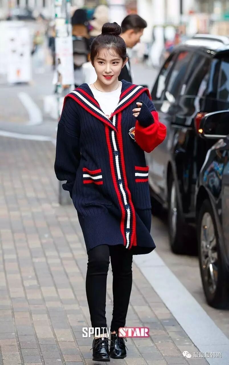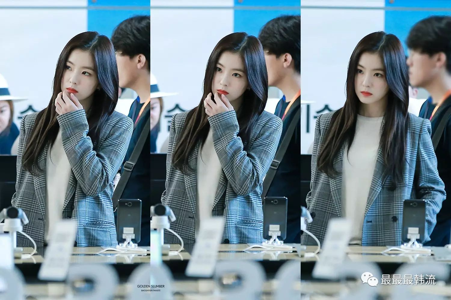 另外的西装造型就是Irene的穿搭日常了!又酷又甜的“冷”女孩儿!