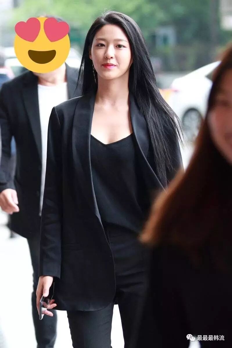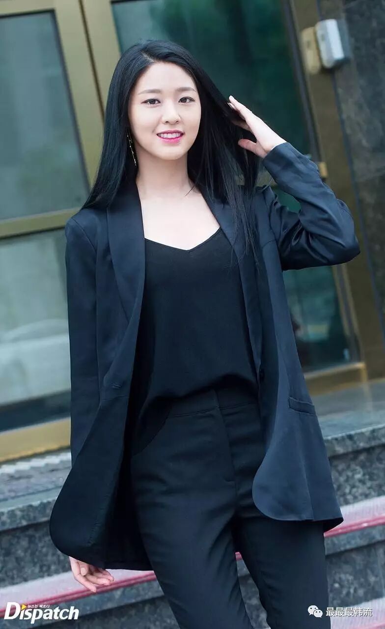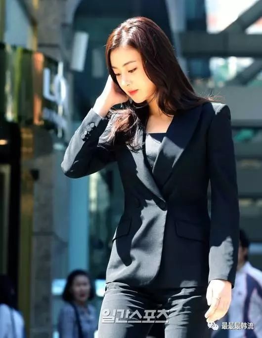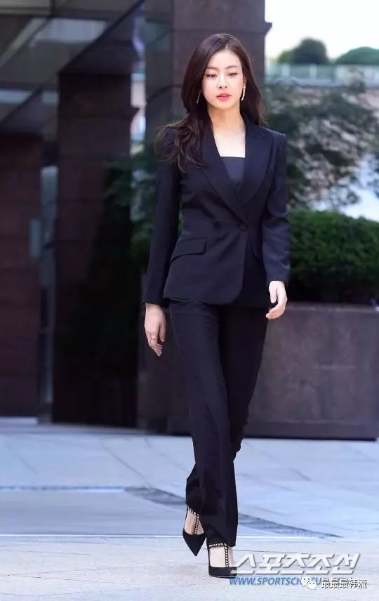 这身黑西装里面搭了宽松的黑T,显得随意了些,黑长直又透露出一丝小性感。