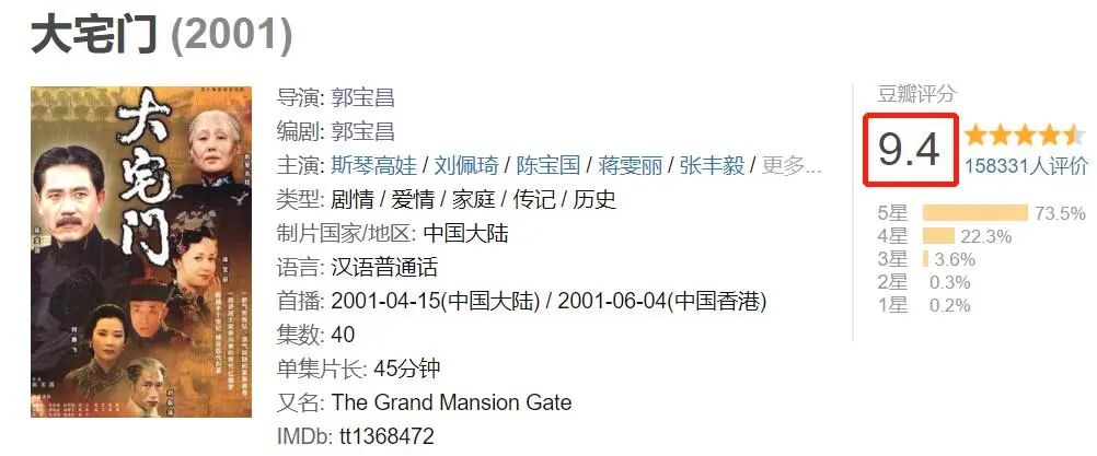 如今,22年过去了,它在豆瓣上的评分仍然高达9.4。这样的成绩,不管是在“宅门剧”的范畴里,还是在国产剧的历史中,都堪称“巅峰之作”。