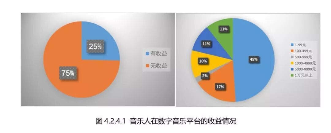 但即便音乐已经从实体过渡到了数字,盗版问题依然普遍存在。根据IFPI的数据统计,在2008年,中国数字音乐的盗版率超过90%,根据2018年《音乐人生存现况与版权认知状况调查研究报告》的数据,74.59%的音乐人在数字音乐平台自发行音乐没有得到过版税,在数字音乐平台有所收益的被试中,回报不足100元的音乐人为49%。