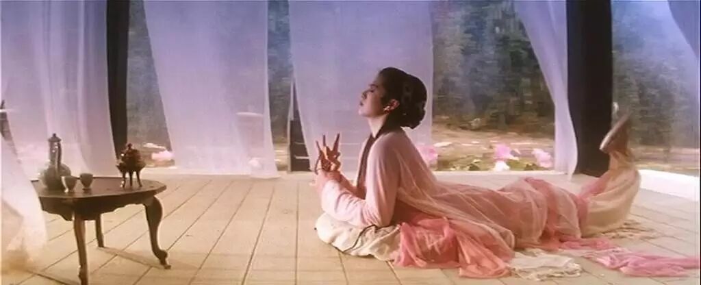 古筝开场,王祖贤轻嗅焚香的画面配陈淑桦悠悠嗓音:
