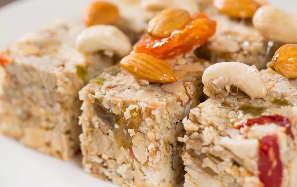 新疆的玛仁糖,全名叫核桃玛仁糖,在新疆以外的地方通常叫“切糕”。虽然如今听起来有些变了味,但当地的玛仁糖选用的原料非常丰富!由核桃仁、玉米饴、葡萄干、葡萄汁、芝麻、玫瑰花、巴丹木、枣等原料熬制而成。吃一口,满满的都是能量。