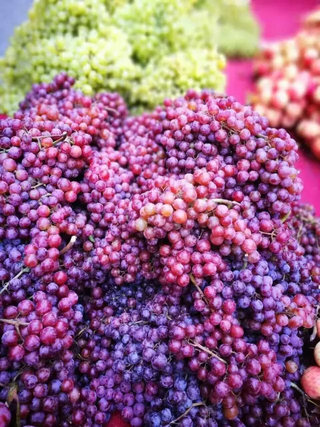 新疆有两千年的葡萄种植历史,吐鲁番是葡萄的盛产地,几乎家家庭院里都种植葡萄,“城在葡萄中,人在葡萄中”。每年8月前后,葡萄成熟,一串串沉甸甸的葡萄在阳光的照耀下显得特别饱满多汁,无比诱人。