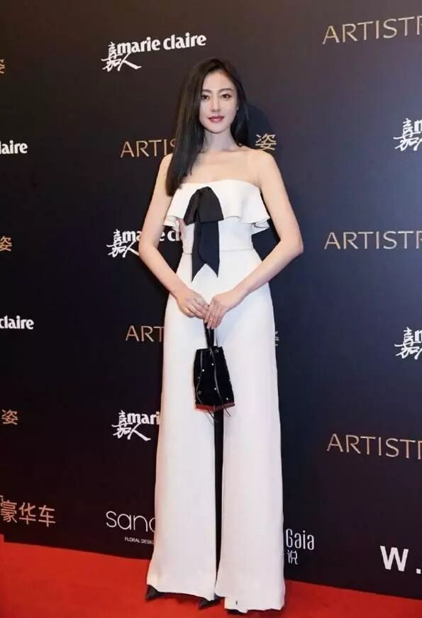 说实话,张天爱的锁骨是十分的美丽的,粗细匀称,胸前的蝴蝶结也很有特征,全体的造型十分的简练大方,一点都磨蹭,很时尚的一身打扮。