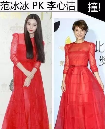 范冰冰和李心洁,一样是大红色,但范冰冰还是更胜一筹。
