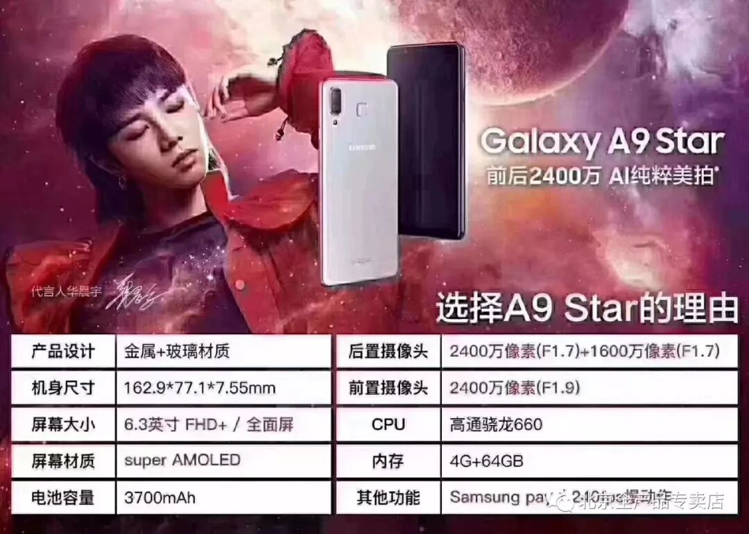 购Galaxy A9 Star限量赠 华晨宇手机后壳或名信片。