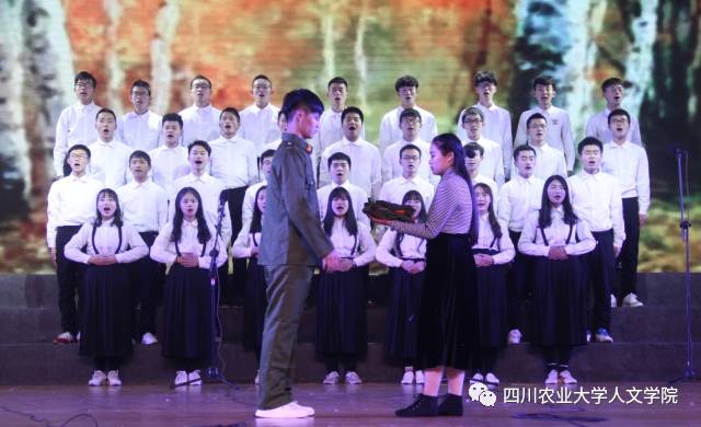 “静静的村庄飘着白的雪,阴霾的天空下鸽子飞翔,白桦树刻着那两个名字,他们发誓相爱用尽这一生......”两院17级小班才艺大赛一等奖获得者带来的歌舞表演《白桦林》,将恋人相爱却不能相守的故事演绎得淋漓尽致。