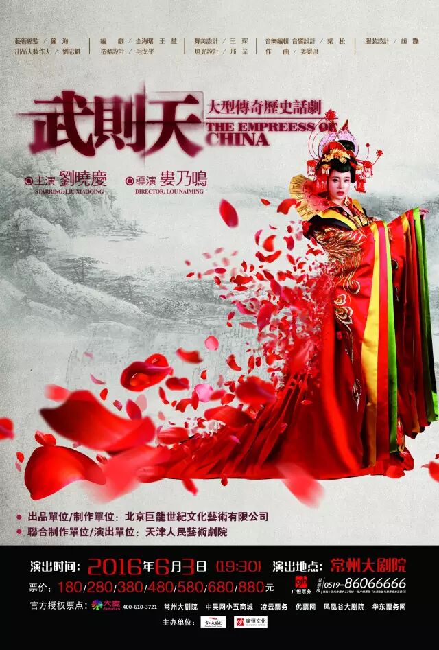 大型传奇历史话剧《武则天》至今已完成了首轮国内巡演以及北美巡演,享誉海内外。2016年6月3日,传奇历史话剧《武则天》将霸气席卷龙城,让常州的观众朋友们一饱眼福。