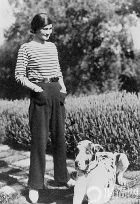 1917年 Chanel 高定:即使放在今天来看,经典海魂衫+高腰阔腿裤+平底鞋的搭配,都是走在潮流尖尖儿的黄金组合。