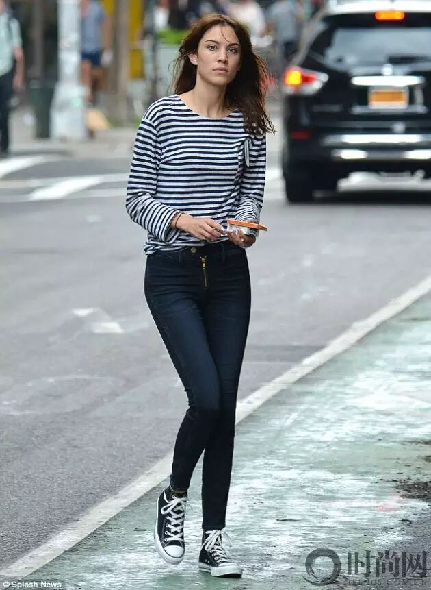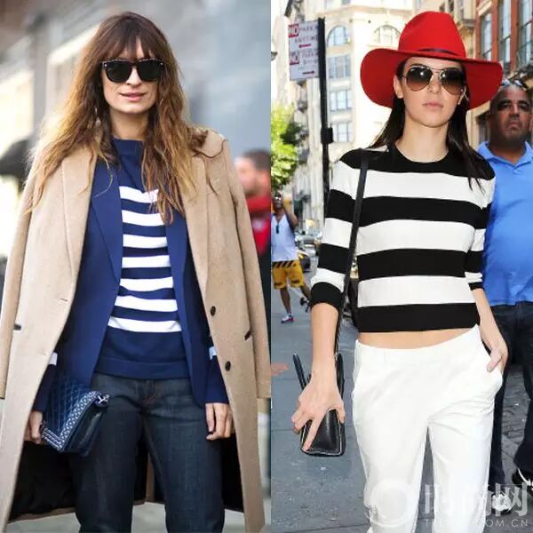 上至熟女名模Caroline de Maigret (40岁),下至95 后超模Kendall Jenner,也都不例外的选择条纹内搭出街。
