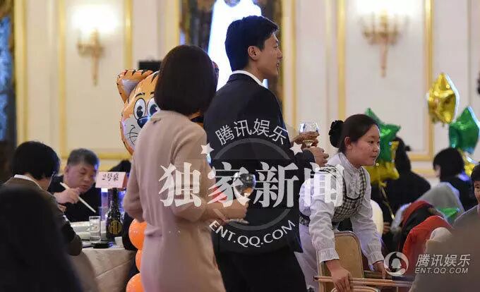 宴会中,夫妻两人笑容满面为亲友敬酒,凌潇肃也亲吻起了儿子脸颊,画面相当有爱。