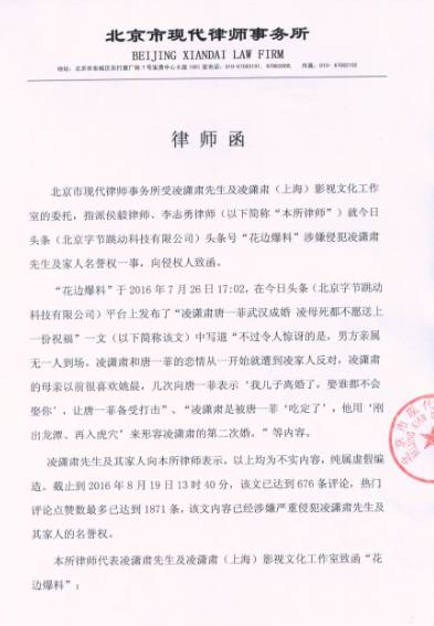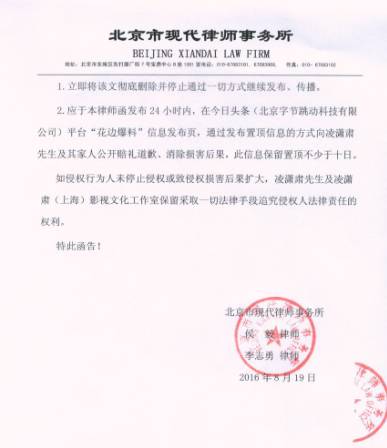 为此,凌潇肃还发了律师函,痛斥不实传闻:“七年时间,树欲静而风不止,不实报道愈演愈烈,对凌潇肃先生及其家人造成持续不断的伤害,我们只想踏实演戏,安静生活,所以决定用法律结束这一切。”