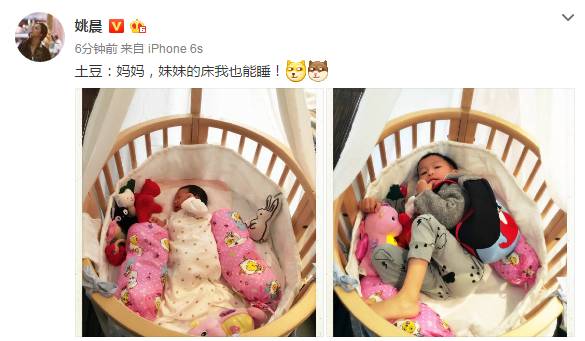 如今,育有一子一女的姚晨,现阶段最主要的工作,就是晒娃。