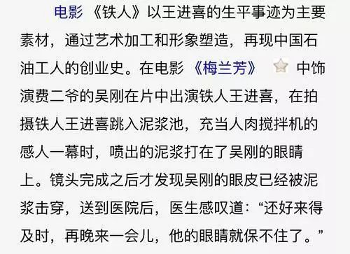 只是达康书记的眼皮是因为拍戏受伤的缘故:吴刚在演铁人王进喜的时候被泥浆打穿了双眼,留下了伤疤↓