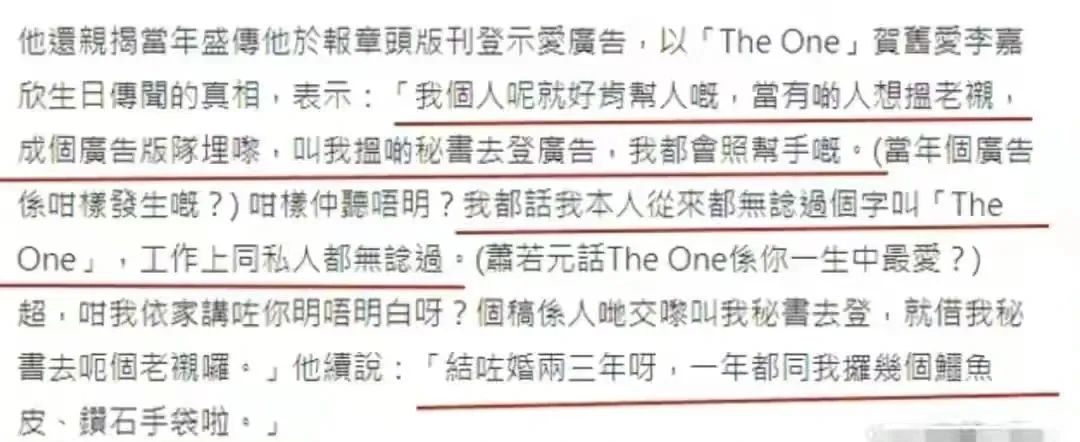 刘銮雄被问到一生挚爱的女人是不是李嘉欣时,刘銮雄一脸不屑的回应,当年在李嘉欣过生日时,为了宣传自家的商场,和她进行的商业活动而已。