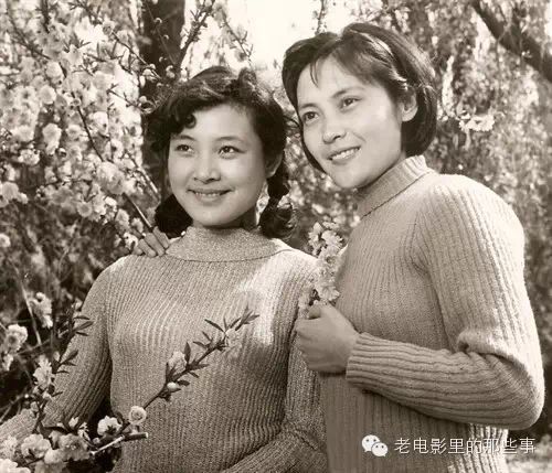 和宋晓英一起合影,那时候的影星基本都是素颜照,绝对的高素质美女.