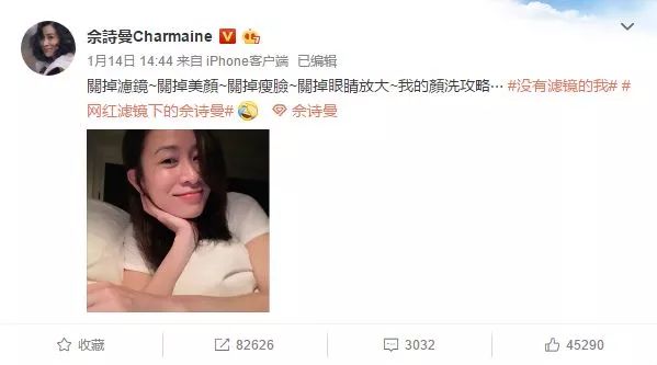 正常镜头和网红滤镜下的佘诗曼的长相差别巨大,网红照像是被按在地上疯狂摩擦~摩擦~