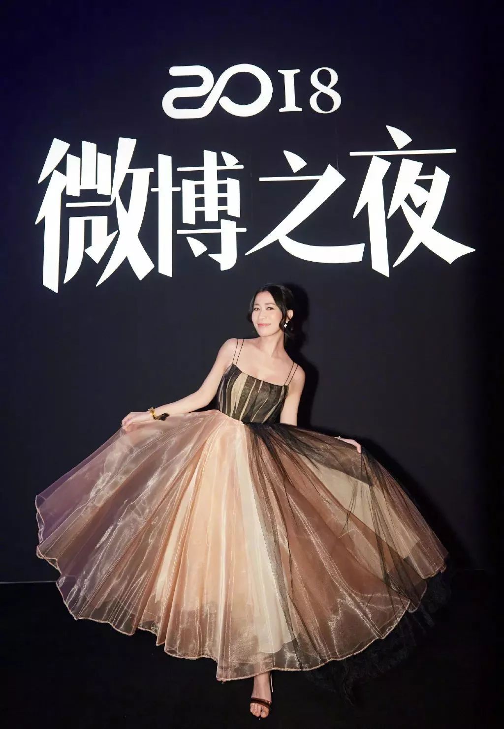 在上周末的参加微博之夜的阿佘没有夸张的妆容,笑起来也很自然大方。