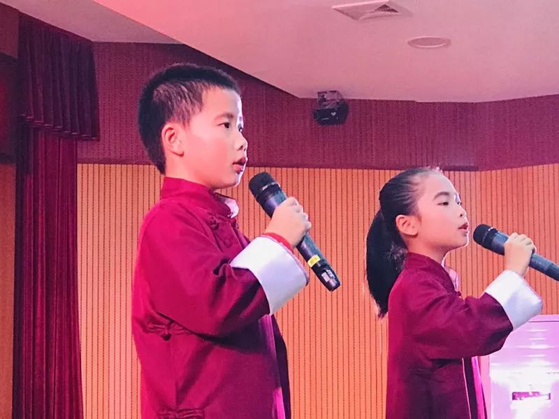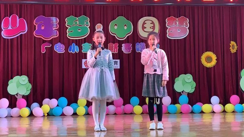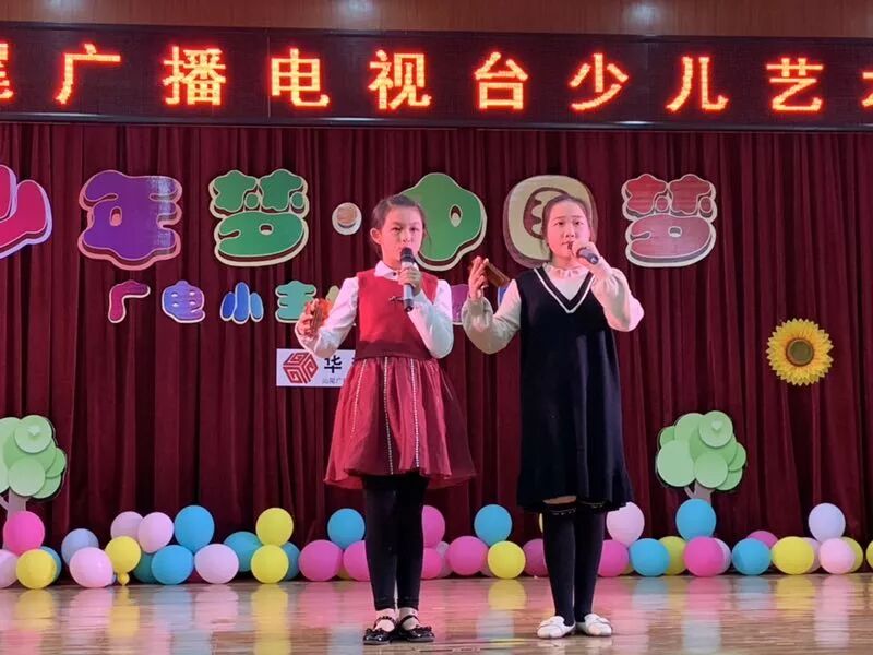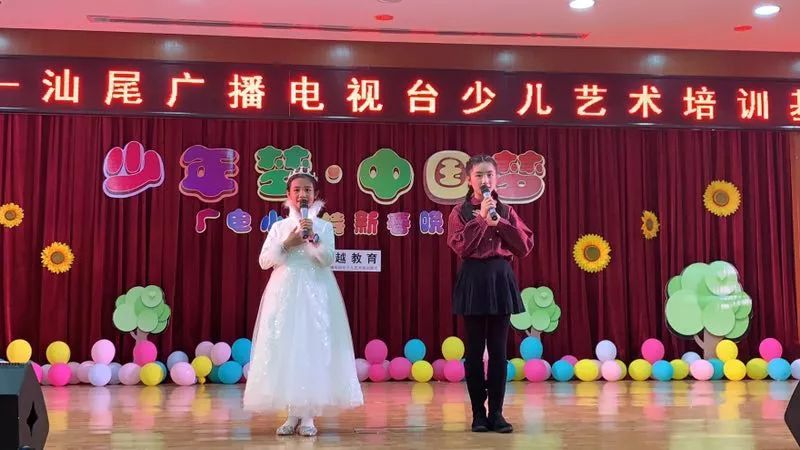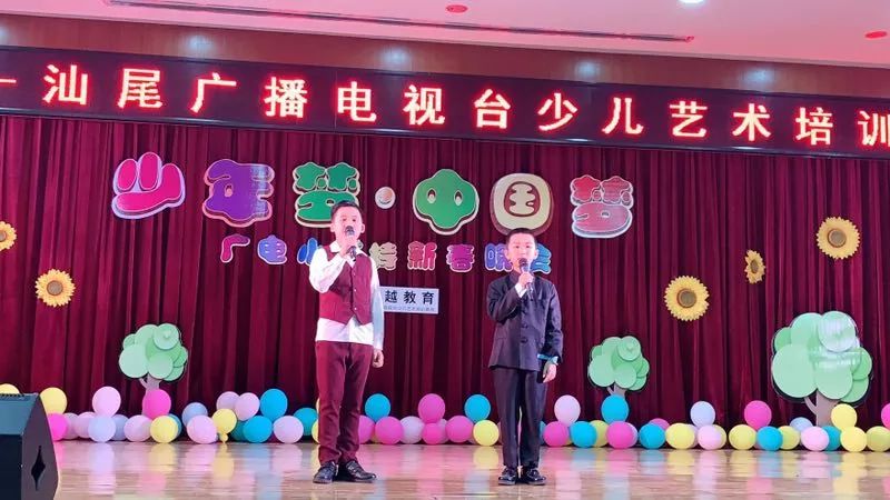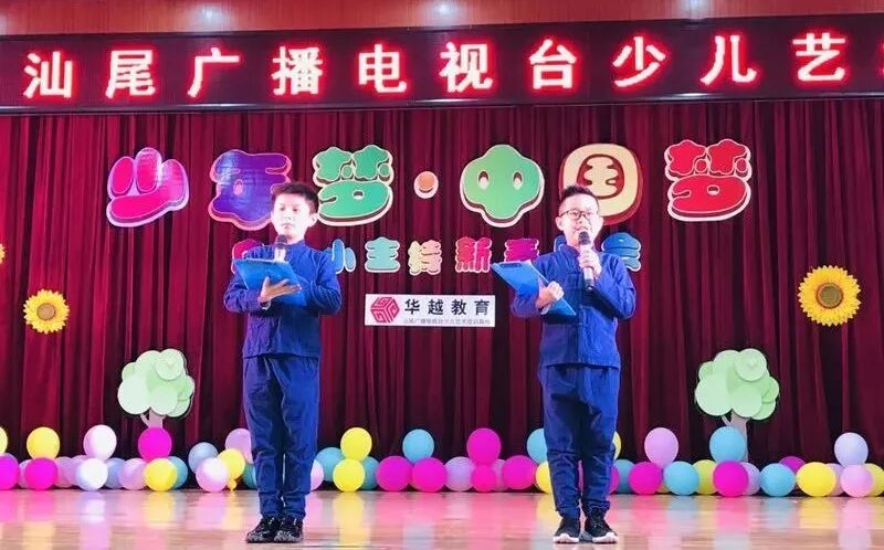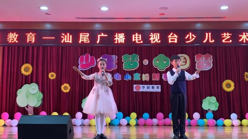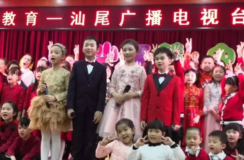 新春晚会除了集体朗诵、小组朗诵、快板、童话剧、相声、舞台剧、等共25个节目,新春晚会的主持人由华越教育(汕尾广播电视台少儿艺术培训基地)的蔡见宇、席若菡、叶安睿、龚姝睿四位学员共同担任,他们训练有素的主持水平获得了家长们的一致好评。