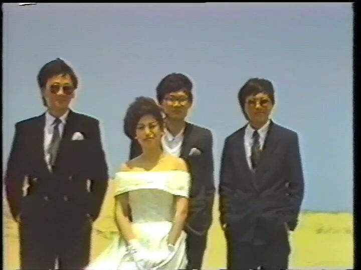 △1986年,杨德昌(左)与侯孝贤、陈国富(左三)帮忙拍摄蔡琴的音乐录影带《成人游戏》