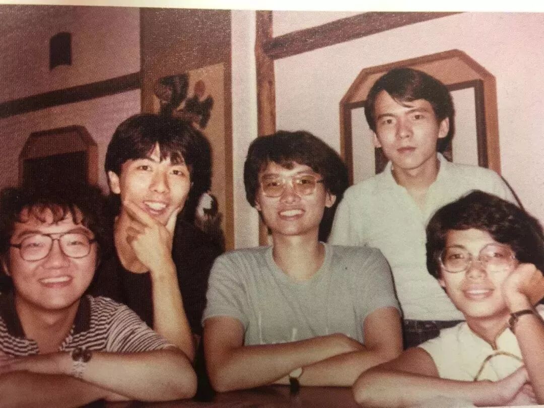 △1980年,「天水乐集」同仁,从左到右:许乃胜(作词)、李寿全(制作人)、苏来(作词作曲)、李建复(歌手)、蔡琴